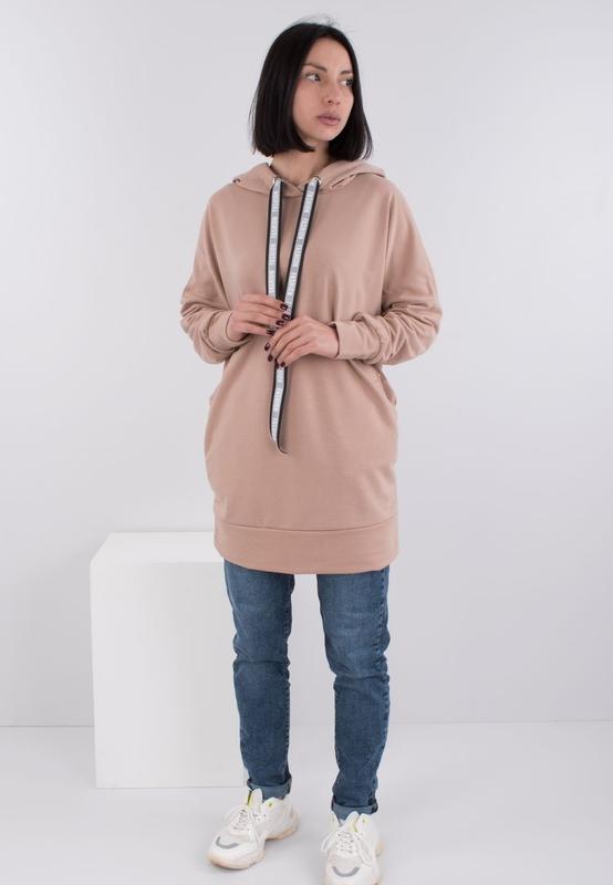 Жіноча худі-сукня Колір: Бежевий, рожевий, сірий, чорний Матеріал: Бавовна / спандекс Утеплювач: Без утеплювача Сезон: Весна/Осінь Вид застібки: Без застібки Кількість кишень: 2 Еластичність: Так Особливості: Світловідбиваючі елементи Розміри: S, M, L, XL Орієнтовна розмірна сітка: Розмір S: плечі 56 см, напівобхват грудей 52 см, довжина рукава 55 см, напівобхват пояса 49 см, напівобхват стегон 50 см, довжина виробу 84 див. Розмір M: плечі 58 см, напівобхват грудей 53 см, довжина рукава 55 см, напівобхват пояса 51 см, напівобхват стегон 51 см, довжина виробу 84 див. Розмір L: плечі 60 см, напівобхват грудей 54 см, довжина рукава 56 см, напівобхват пояса 53 см, напівобхват стегон 52 см, довжина виробу 85 див. Розмір XL: плечі 62 см, напівобхват грудей 55 см, довжина рукава 56 см, напівобхват пояса 55 см, напівобхват стегон 53 см, довжина виробу 85 див. Shoppingwith_Smile