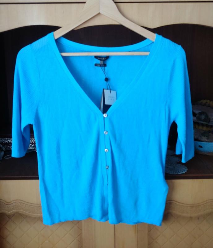 Гарна кофточка MD, класно лягає і виглядає. Тканина 78% бавовна, 22% поліамід. Розмір М: плечі 39 див., пог. 44, довжина 51.