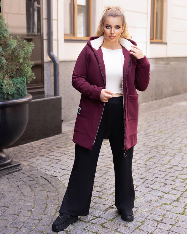 ❤️🔥 Кардиган з хутром❤️🔥 5204 🔸Ціна:1000 грн🔸 Розміри: 1(48-50),2(52-54),3(56-58) Тканина: трикотаж 3-х нитка начіс, підклад (поличка та спинка, капюшон) штучна овчина Виміри по тканині: Кофта 1(48-50)-ОГ(106),ОС(114) 2(52-54)-ОГ(114),ОС(122) 3(56-58)-ОГ(122),ОС(130) Довжина виробу по спинці 82см Довжина рукава 74см
