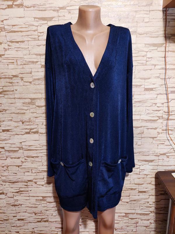 Ткань эластичная, тянется, с легким переливающимся блеском. цвет темно-синий, с фиолетовым оттенком. Размер 24/26, ПОГ 75+, ПОТ 74+, плечи 56, подол 72+, рукав 55, бицепс 20+, длина от плеча 79 Стан идеален. Задавайте все вопросы к покупке, обмен и возврат не предусмотрен. Отстираю безопасной оплатой или после оплаты на карточку.