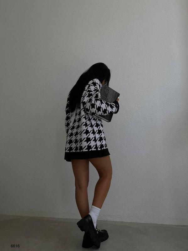 Стильный удлиненный кардиган оверсайз на пуговках, модный принт « гусинная лапка » Реал фото👍 # 0065 ▪️Производство Турция 🇹🇷 ▪️Состав: акрил 100% ▪️Отличное качество, ткань тянется ▪️Размер: SM, ML ▪️Цвет: Черный