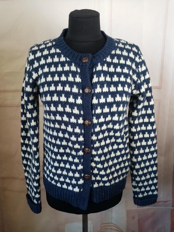 Кофта в ідеальному стані дефектов нема Гудзики усі є в наявності вязка плотна склад вовна и нейлон Ног 50см Нот 48см Плечі 41см довжина рукава 64см пор16см Довжина по спині 58см Нот