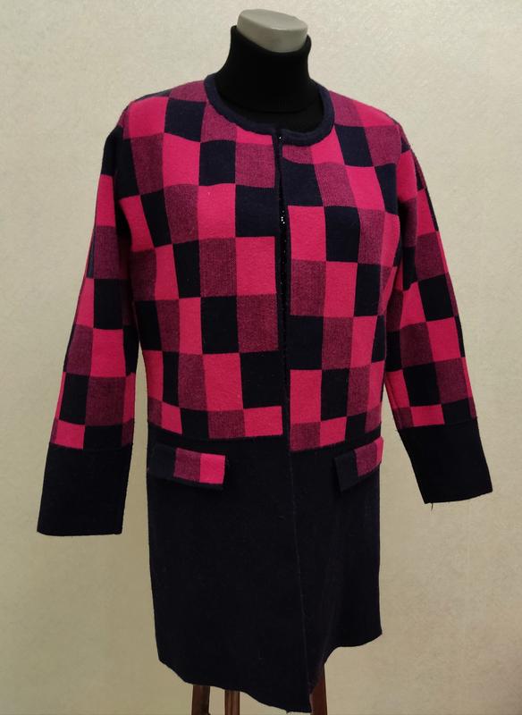 Кардиган у клітинку. Розмір 42-44 (XS-S). Стан ідеальний. Без дефектів. Довжина по спинці 80 см. Довжина рукава 57 см. Обхват грудей 96 см. Обхват талії 96 см. Обхват стегон 96 см. Колір: малиновий з темно-синім, як на фото. Сезон: осінь-весна. Як новий. Одягався декілька разів. Купувався набагато дорожче. Неймовірно гарний, стильний, модний, зручний та дуже теплий.