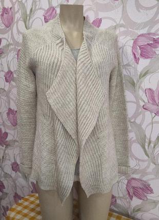 Гарненький тепленький кардиган, склад на фото, стан відмінний, майже новий, без нюансів. Довжина 70 см ПОГ по спинці 44 см, перед вільний. Рукав від горловини 73 см.