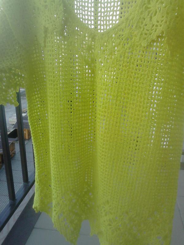 Кардиган, вязаный крючком, желто-лимонного цвета. Подойдет к брюкам, ласинам.