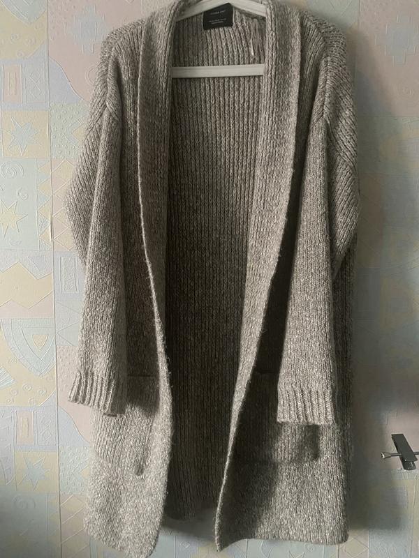 Мягкий уютный кардиган без пуговиц, с карманами. Тянется отлично. Размер М, носился на ХС. В идеале. Пог 50, рукав от верха 79, поб 52, длина 100.