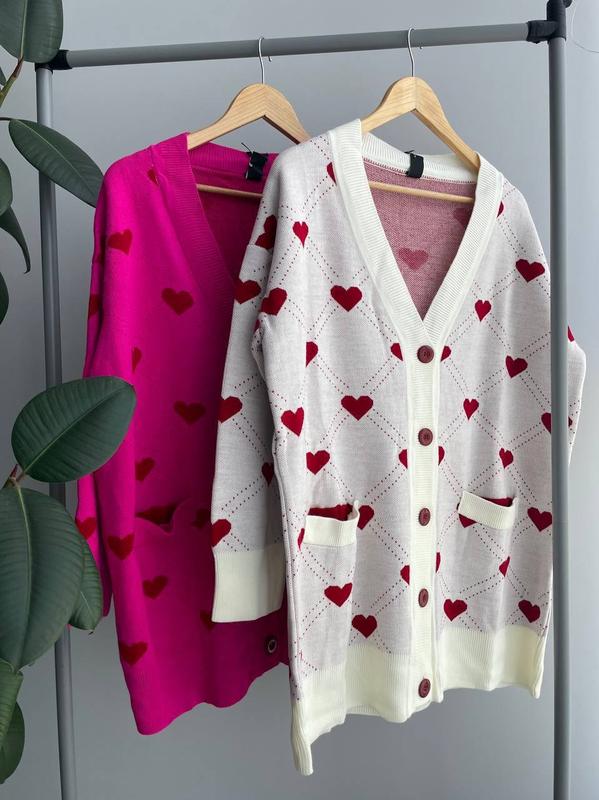 Тканина: машинна в'язка (70% акрил 30% вовна) Розміри: one size 42-46 Виробник: Туреччина Колір білий, рожевий Довжина близько 72 см, рукав від шва 44 см, від горловини 62 см, напівоб'єм грудей 65 см