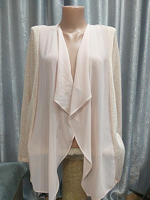 Кофта-кардеган персиковий із люрексом,шифонові вставки.