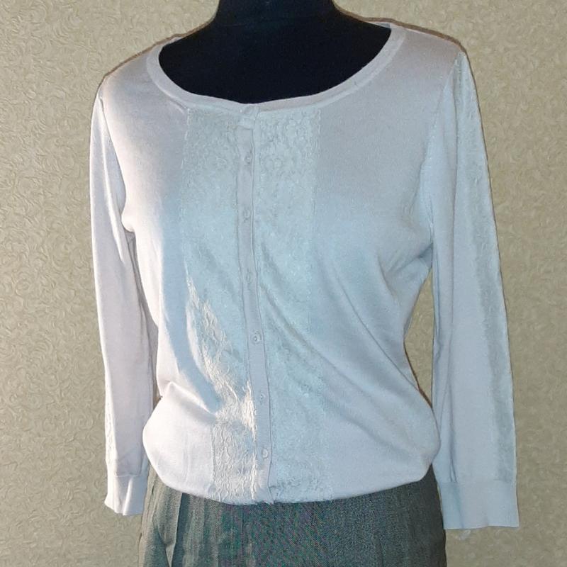 Кофта, тонкий трикотаж, идеальное состояние, с ажурными вставками, цвет молоко