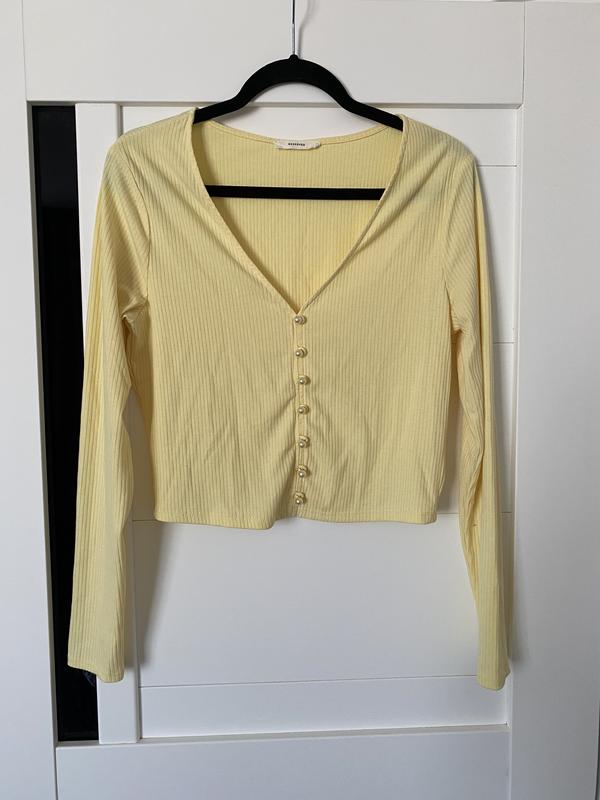 Дуже мила кофточка, вкорочена модель, ніжний колір. Гарно під блакитний низ. Одягнена 1 раз