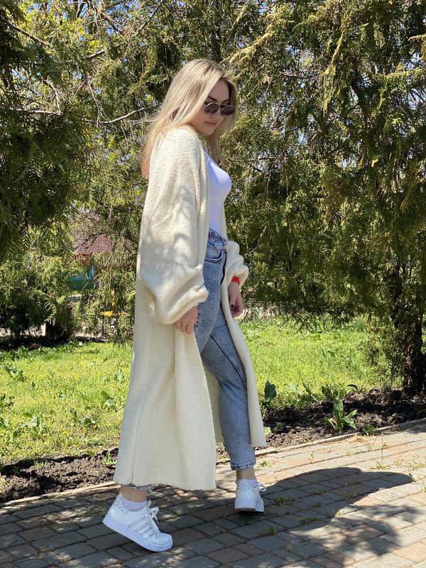 One size цвета шампанского, большая свобода облегания, спущенное плечо, длинный и широкий струящийся рукав на манжет, V-образный вырез горловины. Длина 120 см, ширина 67 см (134 см в окружности) и самое главное - пряжа) это настолько мягкий укууш, не зря производители назвали этот артикул Teddy 77% меринос, 23% па