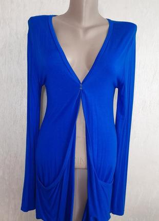 Жіночий легкий кардиган насиченого синього кольору з карманами, 95% котон, у гарному стані, розмір 44-46