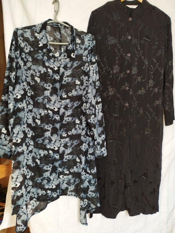 Черный кардиган 52-54 размера.Вискоза.длина 118,рукав 60 ПОГ52.По бокам разрезы. Серая длина спереди 85,рукав 58,ПОГ 60.полиэстер.