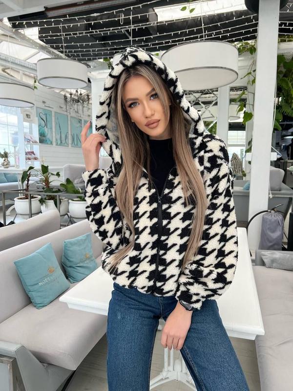 Розміри:42-44,46-48 Кофта #302/4 Тканина: хутро Тедді Колір: білий с чорним Кофта оверсайз. Кишені врізні. Без підкладки. Виміри напівобхват Кофта вільного фасону #302/4 Розмір 42/44 ОГ 55см ОТ 52см ОБ - Довжина 58см Довжина рукава 60см Розмір 46/48 ОГ 60см ОТ 56см ОБ - Довжина 58см Довжина рукава 61см