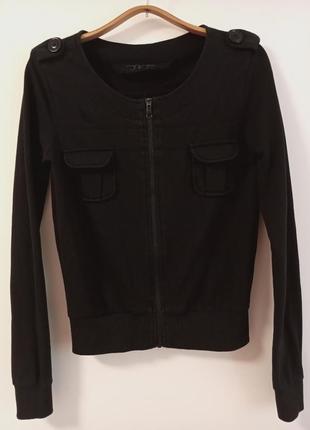 Комфортна кофта бомбер на блискавці та невеликими акуратними кишеньками на грудях. Бирки зрізані, підійде на розмір XS-S-M, точніше за замірами: довжина від плеча 57,5, по бок. шву 36,5 довжина блискавки спереду 45 ПОГ 46,тягнеться до 55 НОТ 42,5,тягнеться до 55 НОС низ 36,5, тягнеться до 56 плечі 39 глибина вирізу горловини 12 довжина рукава 66, по внутр.шву 53 висота пройми 24,тягнеться до 28 ПЗ біцепса 15,тягнеться до 20 ПЗ в лікті 12,тягнеться до 18 НО манжета 9,тягнеться до 14. Склад: бирка зрізана, але на вигляд і на дотик трьох або двонитка — бавовна/поліестер/еластан — тканина середньої щільності, весна-осінь або прохолодне літо. Стан дуже гарний — дивіться уважно фото. Висилаю після повної оплати. Автоматичні замовлення приймаються.