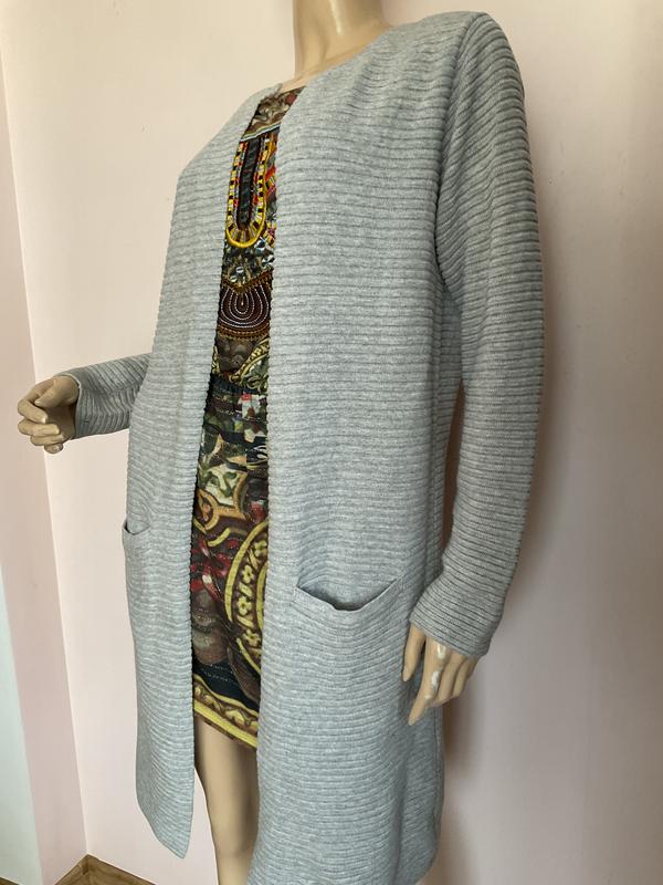 Теплий довгий. Кадиган . Кармани. Трикотаж середньої щільності без дефектів . Заміри в грудях 50 см довжина 94см рукав 63см в плечах 39 см 7:9:23