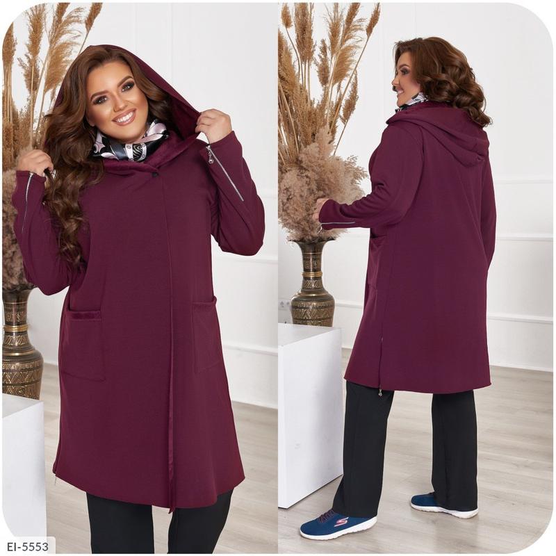 со1409 Кардиган EI-5549 код 3385 Розмiри: 48-50, 52-54, 56-58, 60-62, 64-66 Цвета: синий, марсала, темно-зеленый, черный Ткань: трикотаж мех Обхват рукава см: 41 42 43 44 45 Длина кардигана: 102 см Длина кардигана: 60 см Замеры изделия: 48-50 ог 108 от 108 об 114 52-54 ог 116 от 116 об 122 56-58 ог 124 от 124 об 130 60-62 ог 132 от 132 об 138 64-66 ог 140 от 140 об 146 Невероятно стильный и уютный кардиган из трикотажа на меху, длиной чуть ниже колена. Кардиган застёгивается на кнопку, есть удобный капюшон. По передней полочке накладные карманы. Декорирован металлическими молниями по боковым швам и низу рукава.