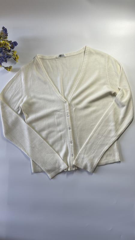 Кардиган молочного кольору. ПОГ 45 см. Плечі 40 см. Довжина 57 см. Рукав 63 см.