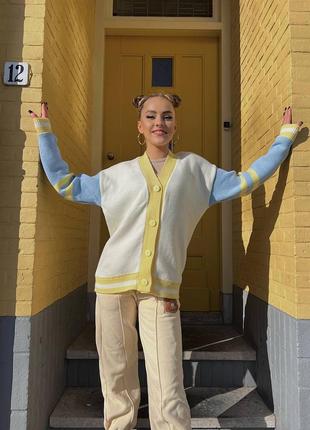 Дуже стильний кардиганчик по типу бомбер, з контрастними рукавами ▪️Арт. BOMBER ▪️Склад: 30% вовна, 70% акрил ▪️Кольори: Блакитний-бежевий Оливка-бежевий Жовтий-блакитний Рожевий-оливка Помаранчевий-рожевий (на фото) ▪️Размер : 42-46