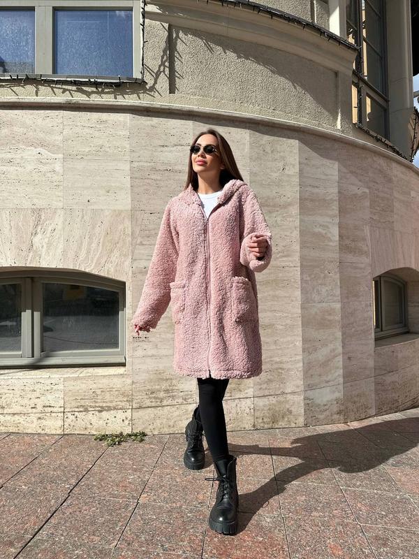 Подовжена кофта Тканина: тедді , молнія під колір тканини Розмір: 42-46( оверсайз ) Кольори: чорний, білий, пудра, графіт Ціна : 769 грн