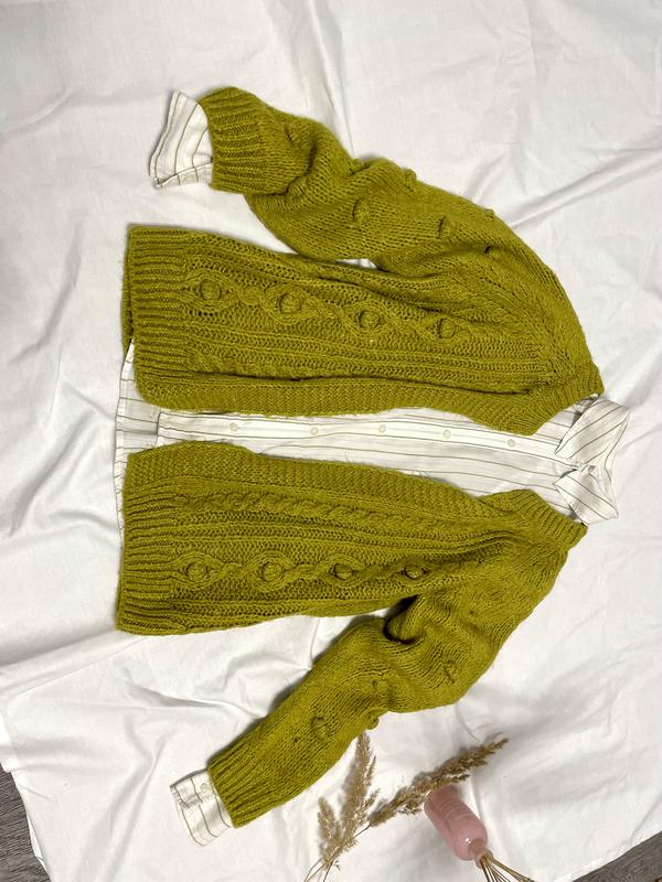 Кардиган з цікавим дизайном. Рукав реглан. Дуже приємний матеріал. Розмір S. В хорошому стані