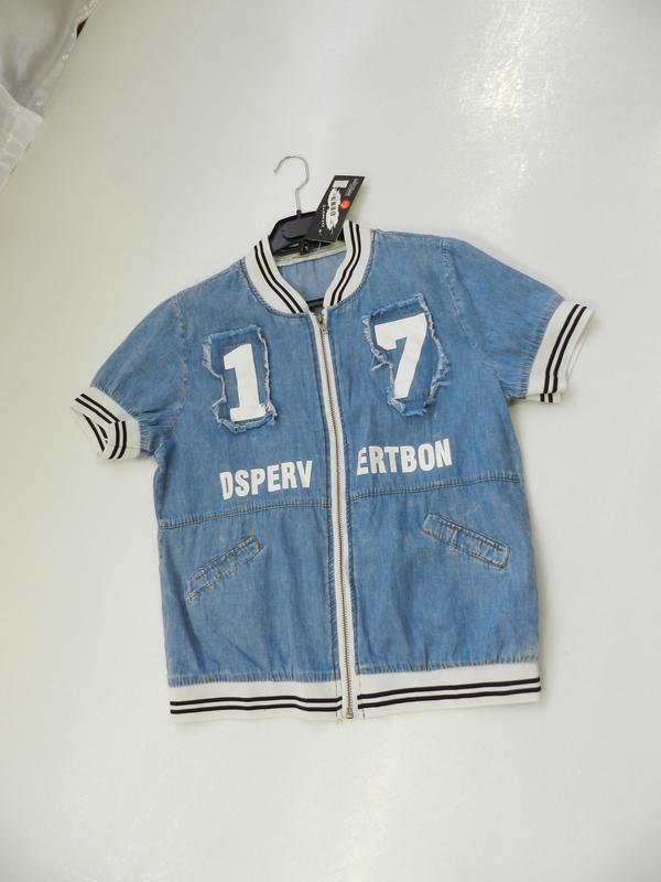 ✅крутой летний бомбер из тонкого летнего джинса с элементами рванки рр м бомбер: плечи 38...