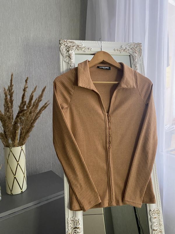 Кофтинка в рубчик карамельного кольору, розмір вказано xs, підійде і на s, стан ідеальний, актуальний фасон цього сезону) Заміри по запиту надам 😉