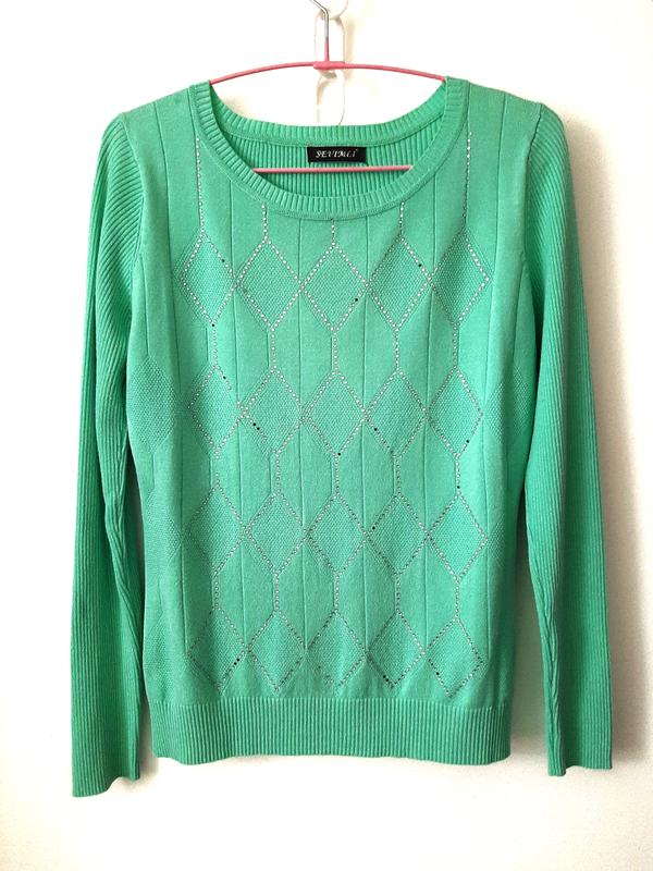 Sevimli турция трендовая кофта светло-зелёная/ментол вязаная декор термостразы женская дже...