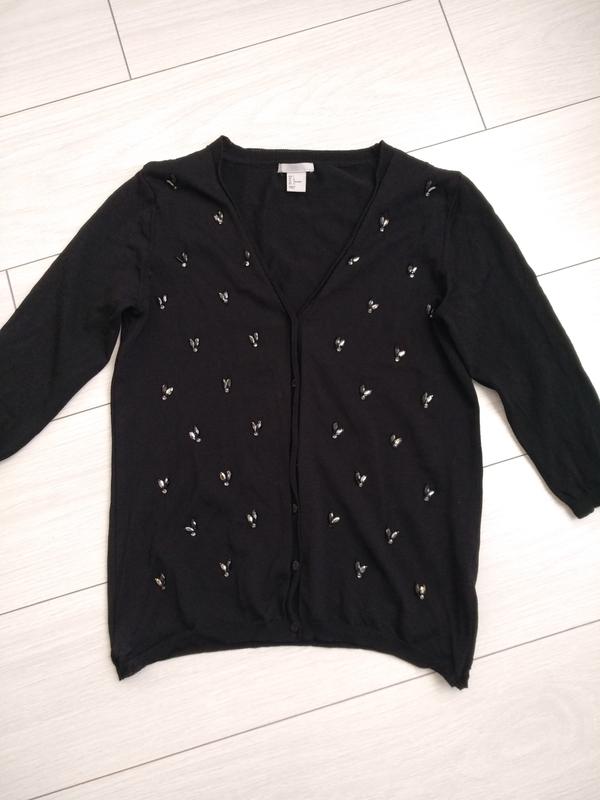 Кофта кардиган на гудзики з нашитими стразами. Довжина рукава 42 см довжина від плеча 50 см ширина в плечах 38 см пів'обєм в грудях 44 см пів'обєм в талії 42 см пів'обєм в бедрах 44 см