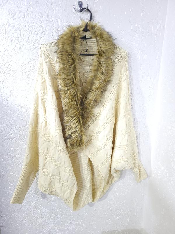 Новий.Без дефектів.Гарний кардиган з хутром.Хутро відмічається на гудзиках .Ззаду ефектно переплітається .ПОГ см.ПОТ см.ПОБ см.Довжина см.Довжина рукава см Ширина плеч см Відправляю Укр.п.Н п Оплата на карту приват банка ПІДПИСУЙТЕСЬ на мою сторінку кожен день оновлення товару і доступні ціни 🛍🤗👍
