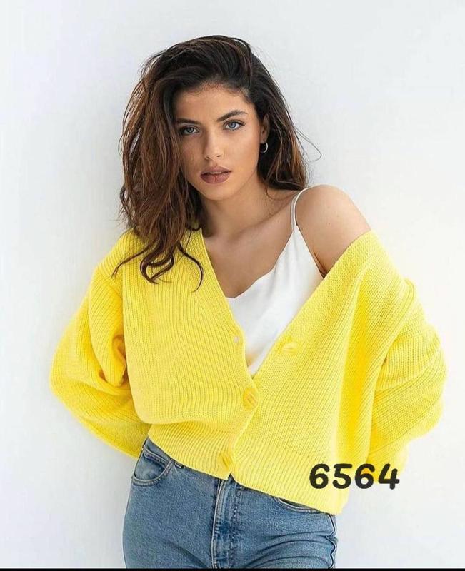 Кардиган Модель: 6564/64 Цена: 760 грн Размер: универсальный (42-46) Ткань: машинная вязка - Замеры (см) Длина 52 Рукав от горл 62 ОГ до 100