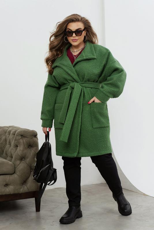 Кардиган Розмір: 50-52, 54-56, 58-60, 62-64, 66-68, 70-72 Матеріал: шерсть-букле- барашик Розтяжність: середня розтяжність 2-4см Цей стильний кардиган-пальто без підкладки з тканини барашик — це вдалий вибір для тих, хто цінує елегантність та комфорт. Його спущені рукава з манжетами створюють невимушений та стильний образ. Відкладний ворот та накладні кишені додають пальто шарму та зроблять його незамінним елементом гардеробу. Пояс у тон підкреслює талію, додаючи жіночності та завершуючи образ. Застібаючись на ряд гудзиків, це пальто-кардиган може стати відмінним завершенням як офісного, так і повсякденного образу. Його універсальність дозволяє комбінувати його з різними стилями та аксесуарами. Орієнтовні заміри готового виробу: 50-52 р-р: довжина кардигана 96см, довжина рукава від горловини 73см, обхват рукава 48см, ОГ - 128см, ОТ -124см, OC -124см. 54-56 р-р: довжина кардигана 97см, довжина рукава від горловини 74см, обхват рукава 50см, ОГ - 136см, ОТ -132см, OC -132см. 58-60 р-р: довжина кардигана 98см, довжина рукава від горловини 75см, обхват рукава 52см, ОГ - 144см, ОТ -140см, OC -140см. 62-64 р-р: довжина кардигана 99см, довжина рукава від горловини 76см, обхват рукава 54см, ОГ - 152см, ОТ -148см, OC -148см. 66-68 р-р: довжина кардигана 100см, довжина рукава від горловини 77см, обхват рукава 56см, ОГ - 160см, ОТ -156см, OC -156см. 70-72 р-р: довжина кардигана 101см, довжина рукава від горловини 78см, обхват рукава 58см, ОГ - 168см, ОТ -164см, OC -164см. юр