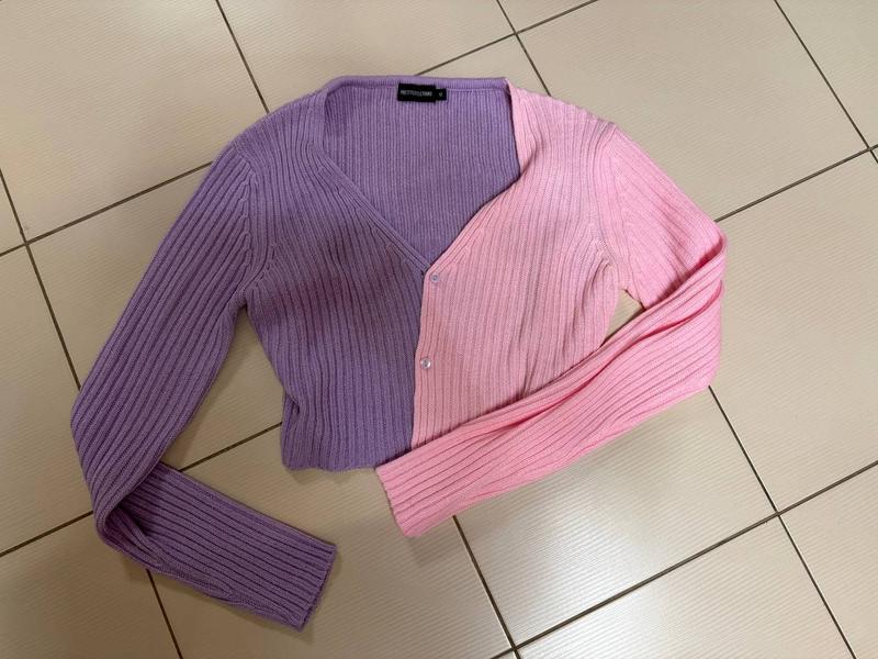 Неймовірний кардиган в поєднанні рожевого та фіолетового кольору, тепленький та м'якенький Розмір: S-M Стан: ідеальний
