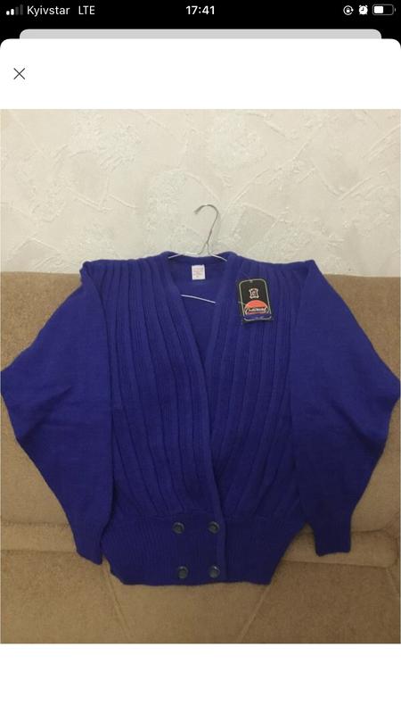 Квітень( з7/04) - травень не буду на місці!!! Жакет на 4-х гудзиках Югославія розмір 50 , 21% вовни НОВИЙ. Колір близький до реального на третьому фото. Такого ж фасону в моєму магазині є червоний жакет на розмір менше.