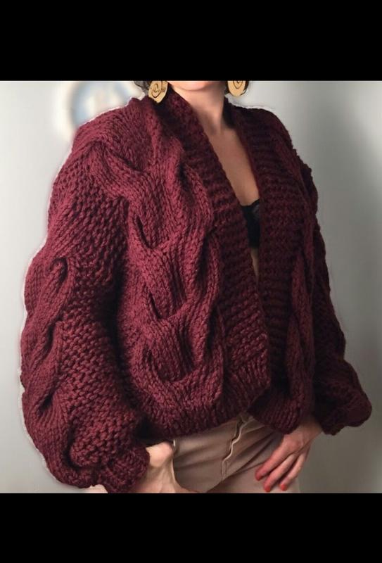 Плетений жіночий об'ємний бомбер кардиган пальто коси кофта велика в'язка