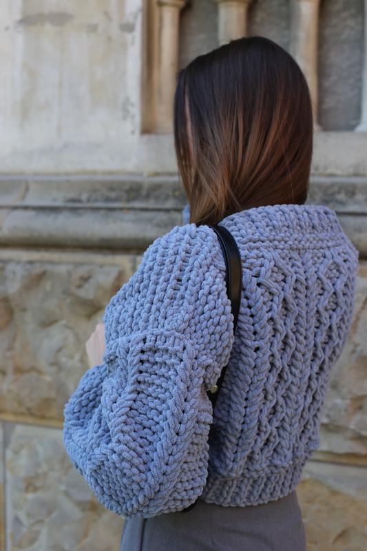 Вкорочений кардиган ручної роботи🤍 З гіпоалергенної пряжі Можливе виконання у інших кольорах Терміни виготовлення 3-4 дні