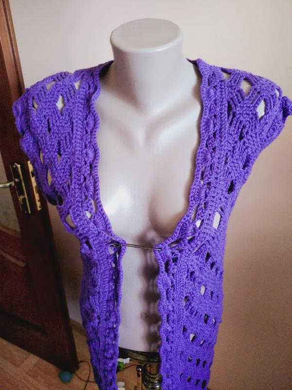 Тепла в'язана накидка кардиган фіолетового кольору 10-12 р ручна робота