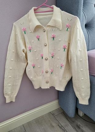 Нежный кардиган, одевала один раз, акрил, ткань приятная на ощупь. длина: 51, 5 см рукав: 56 см пог: 53 см