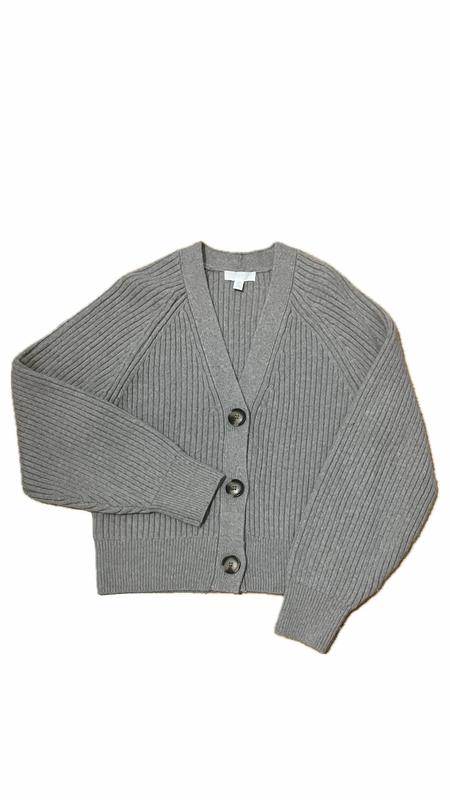 Вільний кардиган з м'якого трикотажу в рубчик домішки вовни. V-подібний виріз, застібка на гудзики, трохи ширші рукави реглан.