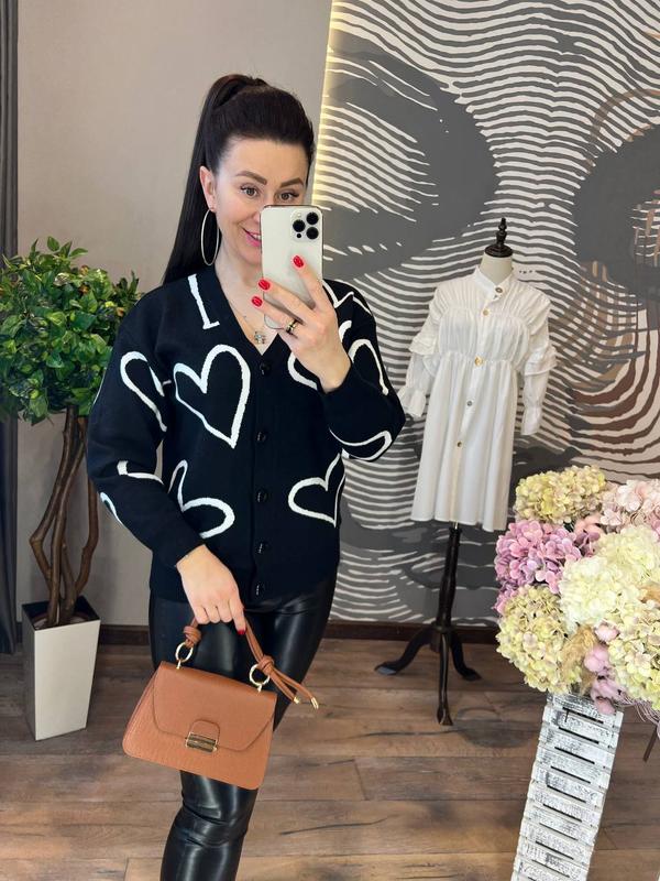 Невероятно красивая и стильная кофта свободного кроя на пуговицах спереди, выполненная из мягкого и приятного к телу трикотажа машинной вязки украшенного романтичным и нежным рисунком, кофта отлично комбинируется с вещами разных стилей и цветов, она чрезвычайно теплая и комфортная, отлично подойдет для любых жизненных ситуаций, согреет вас и займет достойное место в вашем гардеробе размер универсальный 42-44 длина изделия 66-68 код 0247