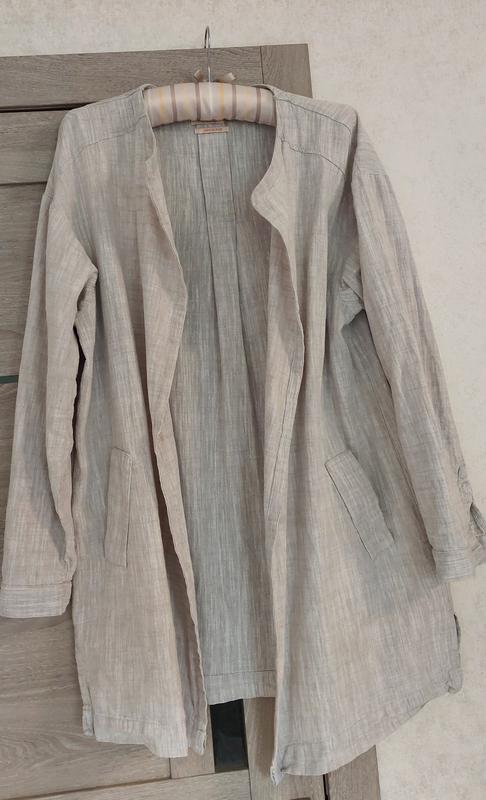 Льняной удленненый бежевый кардиган, пиджак без пуговиц linen by f&f(размер 16-20)