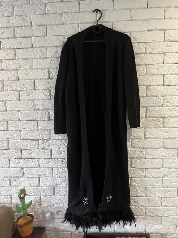 Продам довгий Кардиган ручної роботи. З натуральним пірʼям.