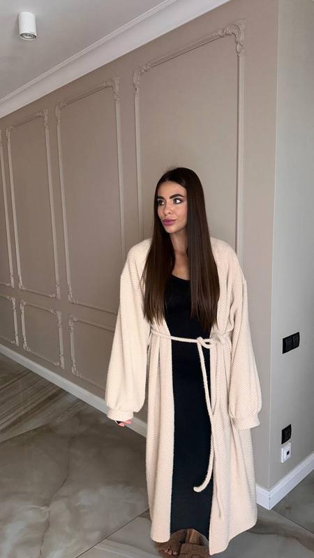 Кашеміровий Кардіган-це must have у твій гардероб . Дуже стильний та теплий . Додає образу смак та розкіш . ❤️ Ціна 1200 грн Матеріал: матеріал: кашемир Альпака. Додається пояс. Довжина виробу 120 см. Заміри по виробу, без урахування запаху та свободи: 💥1 р (42-54): ОГ та ОС 85-125 💥2 р (56-70): ОГ та ОС 126- 150
