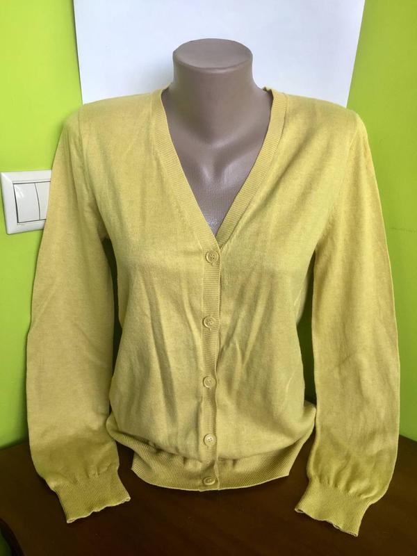 Кофта/ кардиган Next на гудзиках Колір світлої гірчиці Розмір вказаний 10 Тканина тонка Склад: котон 55%/ віскоза 38%/ нейлон 7%