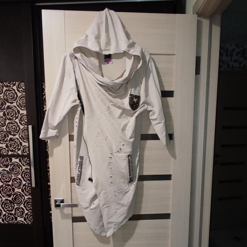 Кардиган молочного кольору,в стані нової речі,вдягався пару разів.Дуже стильна та гарна річ!Розмір М.