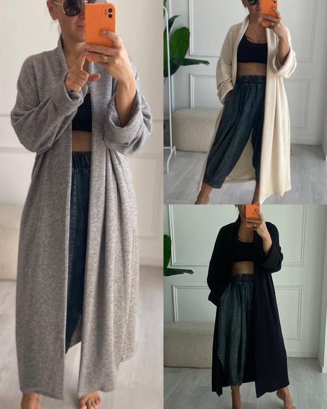 Кардиган теплий 🍂 Мод 245 imma ▫Тканина: якісна двухстороння ангора ▫Розмірний ряд: 42-46,48-52 ▫Колір: чорний ,світлий беж (Молоко) ,сірий Заміри: 📍42-46 Груди :110 см Довжина :122 см 48-52 Груди:122 см Довжина :123 см 📍 Мягесенький кардиган важлива річ в гардеробі кожної стильної дівчини 🩶🍂 🛒 ВІДПРАВКА протягом 2-4 днів‼️ ‼️БЕЗПЕЧНОЮ ОПЛАТОЮ НЕ ВІДПРАВЛЯЄМО