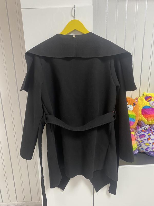 Стильний кардиган, з поясом. Чорного кольору. В ідеальному стані (одягала кілька разів). Підійде на розмір S-M. Довжина по спинці: 75 см. Довжина рукава (від плеча): 65 см.