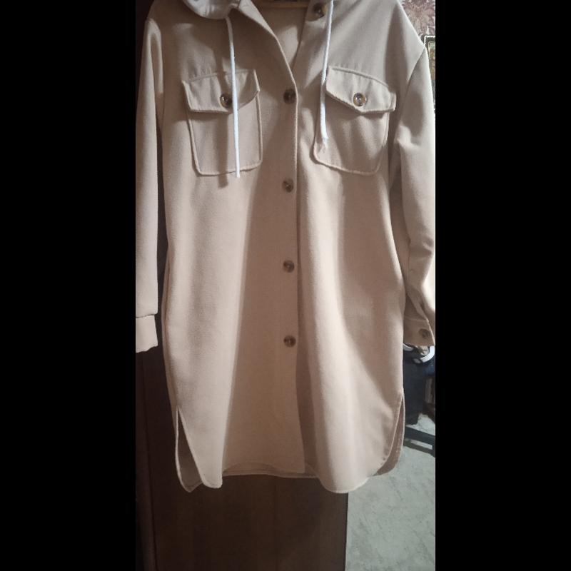 Об'єм грудей -118 см, об'єм бедер- 120 см, довжина -107 см, рукав-61 см, збоку є карман и