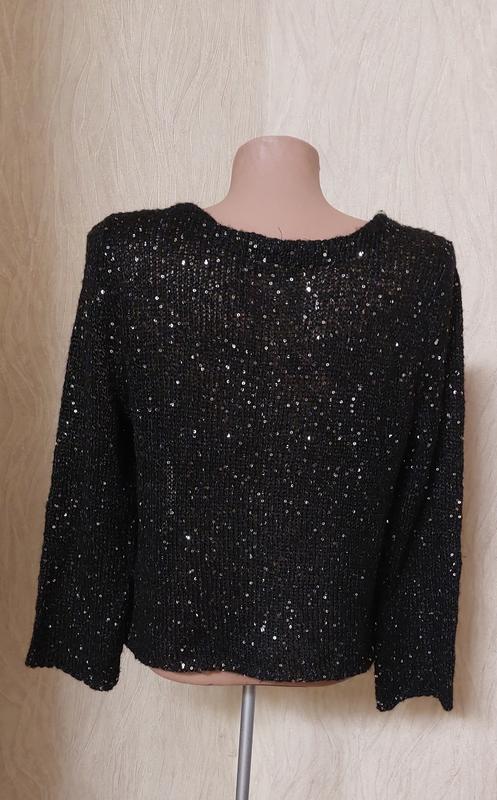 Кардиган новий без паперових бірок дуже ошатний, махеровий .Присутні паєтки( маленькі) сріблясті. На новорічні свята саме те.По боках є два накладні кармани.Комірець- шанелька. М'якенький , в міру пухнастий, дуже красивий.В такому ви не залишитеся не поміченою довж.50см рукав 55 ног 48см