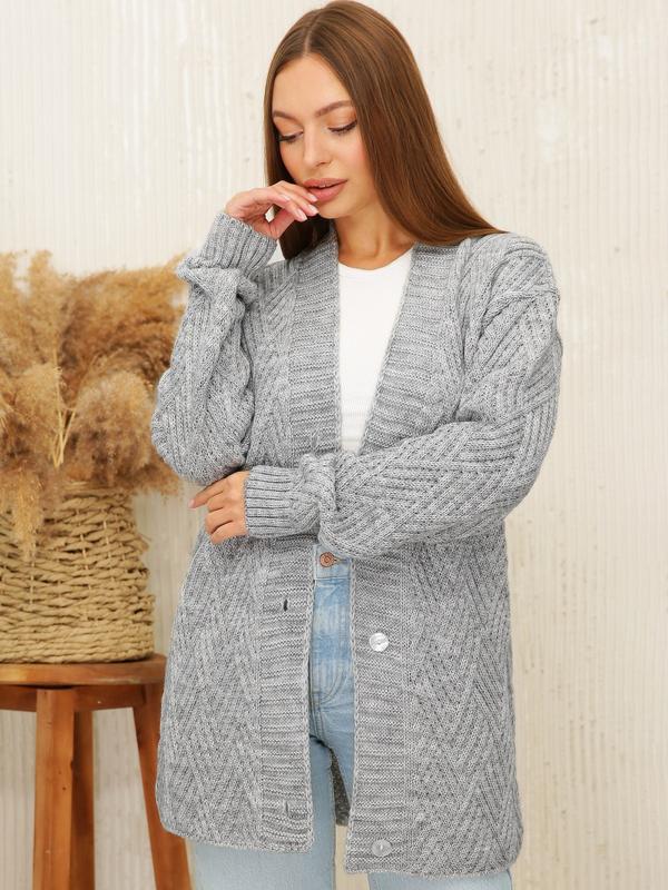 ❄Кардиган дрібної в'язки з ромбоподібним візерунком. Довгі рукави зі спущеним плечем. Застібається на ґудзики. Розмір універсальний:44-50⤵️ 🪡довжина виробу - 72 см 🪡довжина рукава - 60/78 см 🪡Об'єм грудей:96-104см 🍂Склад: 50% вовна, 50% акрил 🌈Колір: сірий,синій, молочний 🍂Матеріал: Вовна з акрилом 💳ЦІНА:1250грн Арт12150 ‼️Збір замовлення 1-3 дні ✔